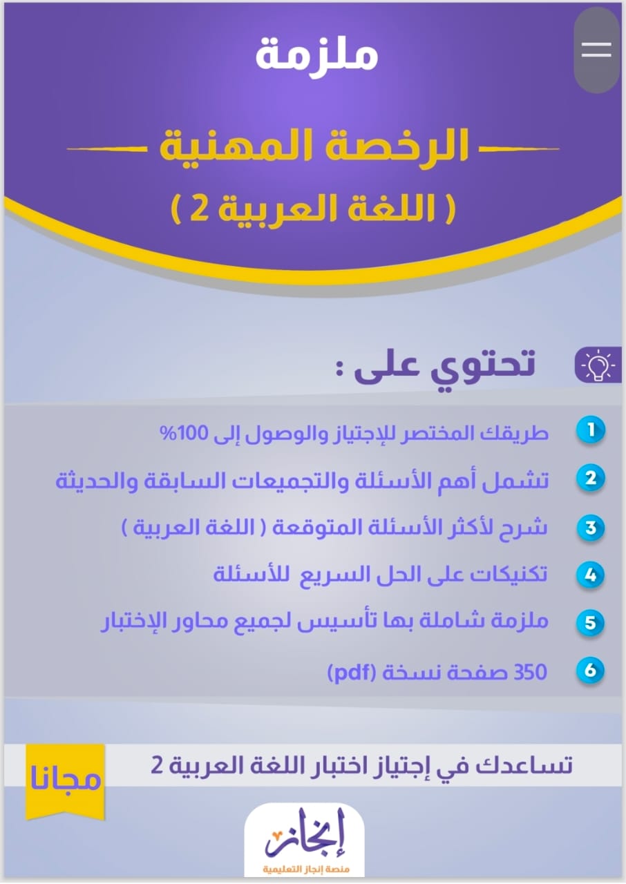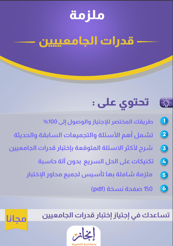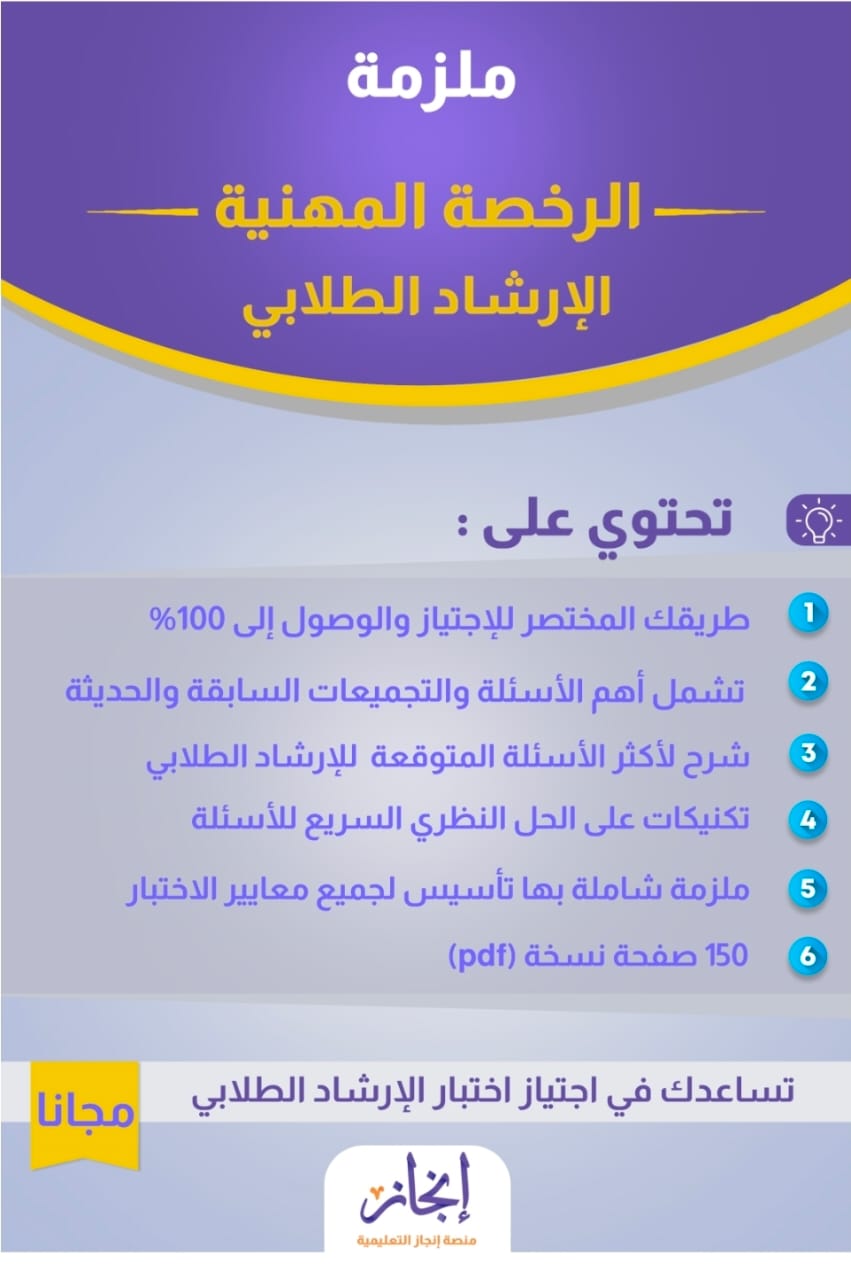 منصة إنجاز التعليمية تقدم لك تدريبا مكثفا، يؤهلك لاجتياز الاختبار بأعلى درجة، خبرة أكثر من ثلاثين عاماً في تدريب الطلاب والمعلمين.